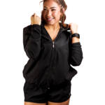 A Corta Vento Feminina PERFORMANCE é leve e prática. Confeccionada em tactel, a modelagem é ampla com caimento perfeito ao vestir. A Jaqueta possui recortes, estampas modernas & diferenciadas. A parte frontal tem fechamento com zíper personalizado e touca com capuz.